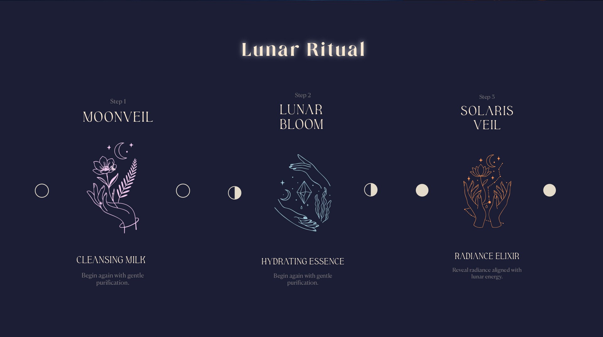 Celestial inspired skincare brand blending ritual, storytelling, and refined design.